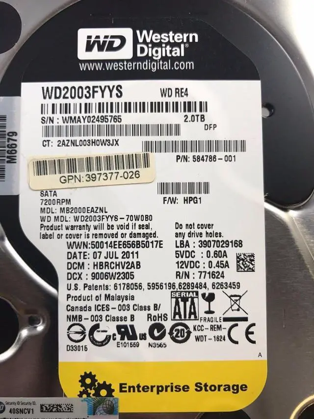 HP 2TB 3.5" Hard Drive 507632-B21 7.2K SATA 508040-001 397377-025 507631-003:
