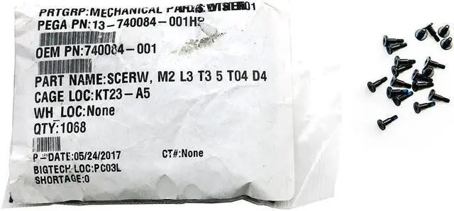 HP Nylok Patch M2 L3 T3 T04 D4 Flat Head Screw 1068 Pieces Package 740084-001.