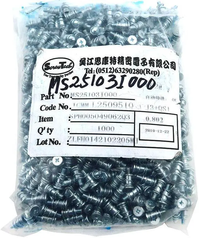 HP M2.5x10.3L Nickel Iron Screws with Spring 1000 Pieces Package MS25103I000.