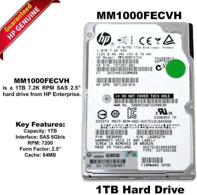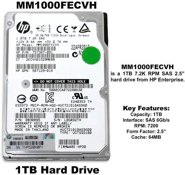 (NOT FOR HOME PC!) HP MM1000FECVH 1.0TB 7.2K RPM SAS 6Gb/s 2.5" HDD Hard Drive 0B30895 757387-001