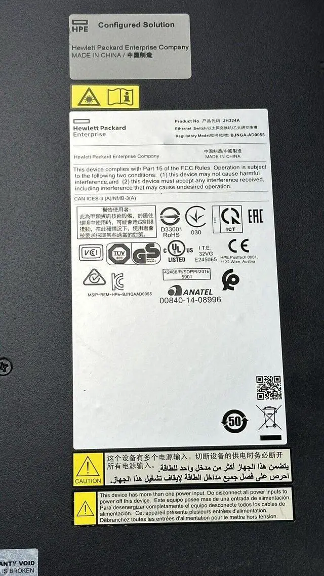 MPN: JH324A, JH324-61001, 5066-0850, RJ45, 1G, 1Gb, 1GbE, 10Gigabit, 10 Gigabit, Layer 3, Managed, OpenFlow, VLAN, Layer 2, SFP+, Fan module, 10/100/1000
