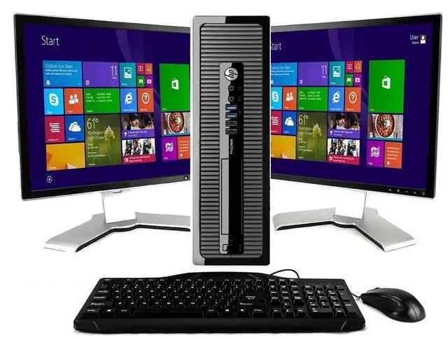 HP Desktop PC Computer Two 19-in LCDs WiFi 8GB 2TB Dual Core Celeron Windows 10