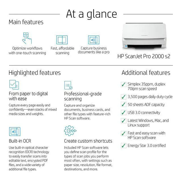 Model: HP ScanJet Pro 2000 s2 Sheet-feed Scanner