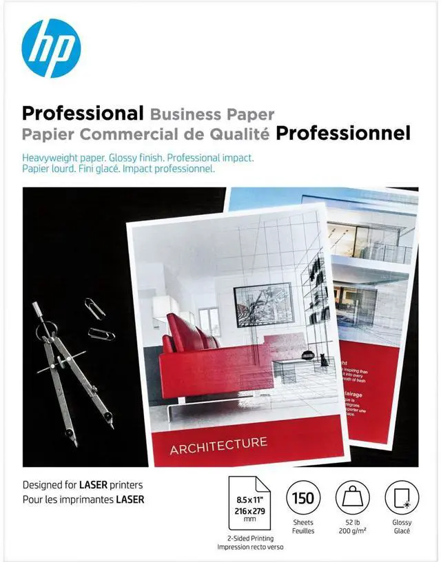 HP Professional Business Paper, Glossy, 52 lb, 8.5 x 11 in. (216 x 279 mm), 150