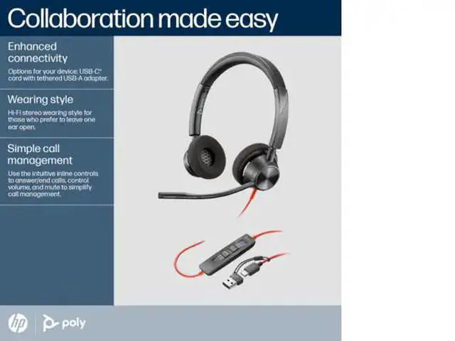 Poly Blackwire 3320 Stereo Microsoft Teams Certified USB-C Headset +USB-C/A