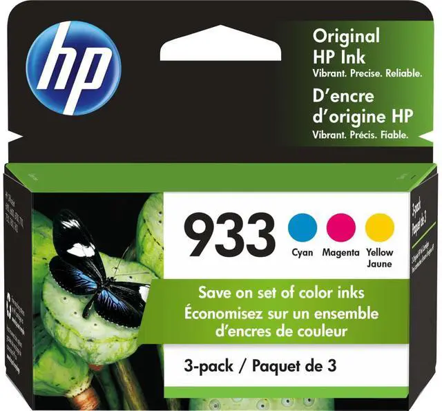Model: HP 933 3-pack Cyan/Magenta/Yellow Original Ink Cartridges