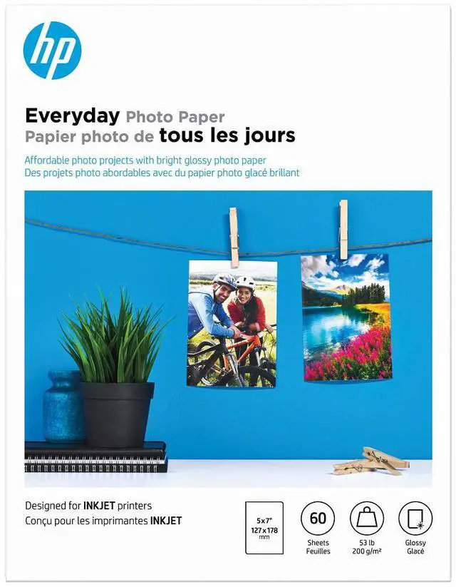 Model: HP Everyday Photo Paper Glossy 52 lb 5 x 7 in. (127 x 178 mm) 60