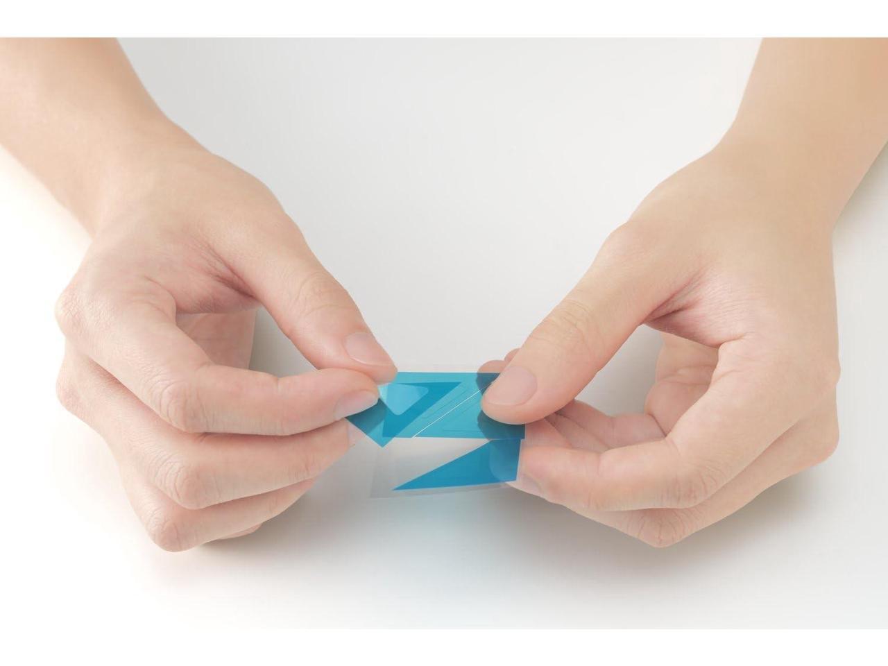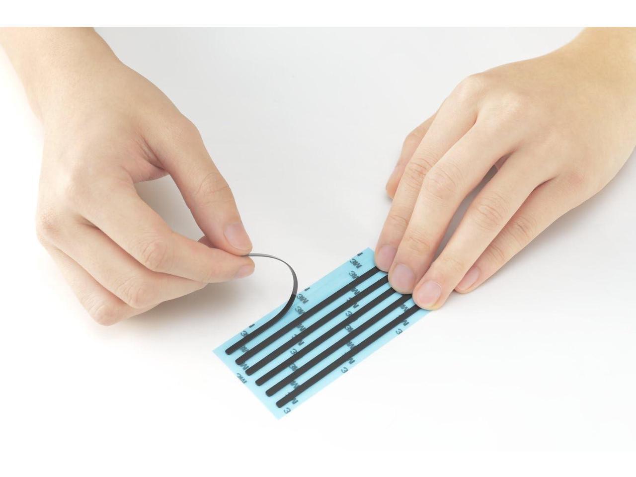 Includes 4 magnetic strips, 4 triangle double-sided adhesive tapes (laptop only), 4 mounting tabs (monitors only), and a cleaning cloth.