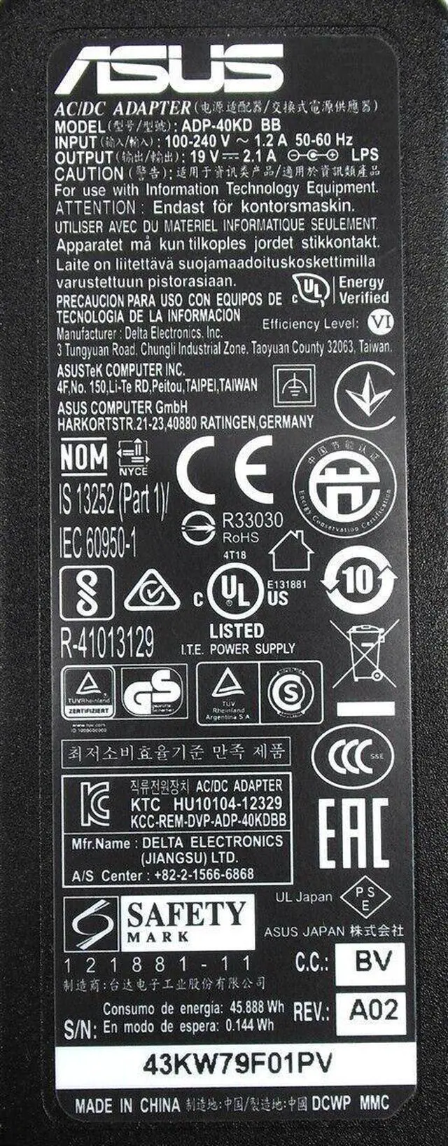Genuine Asus Laptop Charger AC Adapter Power Supply ADP-40KD BB C.C BV 4.0mm Tip