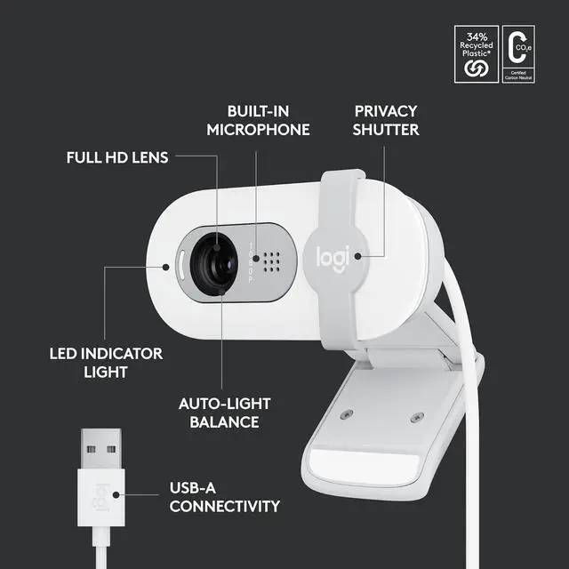 Logitech Brio 100 Full HD 1080p Webcam for Meetings and Streaming - Off White