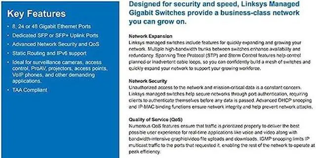 NETWORK EXPANSION FEATURES - Build a mesh of switches easily with features like Spanning Tree Protocol (STP) and storm control. They help control planned or inadvertent cable loops so you can confidently expand your network.