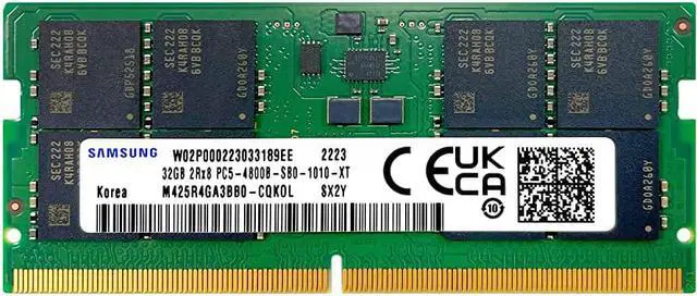 M425R4GA3BB0-CQK Samsung 32GB PC5-38400 DDR5-4800MHz Non-ECC Unbuffered CL40 262-Pin SODIMM 1.1V Dual Rank Memory Module. This module has a Lifetime Replacement warranty.