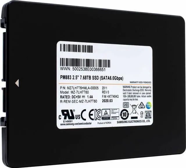 MZ-7LH7T60 Samsung PM883 7.68TB SATA 2.5" Internal SSD MZ7LH7T6HMLA NEW