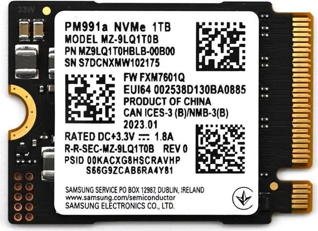 Samsung PM991a 1TB 2230 M.2 NVMe PCIe Gen 3x4 SSD Solid State MZ9LQ1T0HBLB