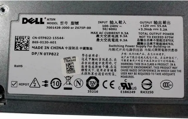 LOT x 2 Server Power Supply 675w Dell PowerEdge T605 7001428-J000 Z675P-00 TP822