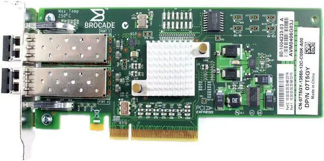 Brocade 825 Dual Port 8 Gbps FC Host Bus Adapter 7T5GY KKYWJ BR-825 w/ 2 8GB SFP