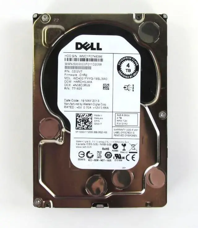 Dell 202V7 0202V7 4TB 7.2K 6Gb/s 3.5" SAS Hard Drive WD4001FYYG W/O Tray Bare