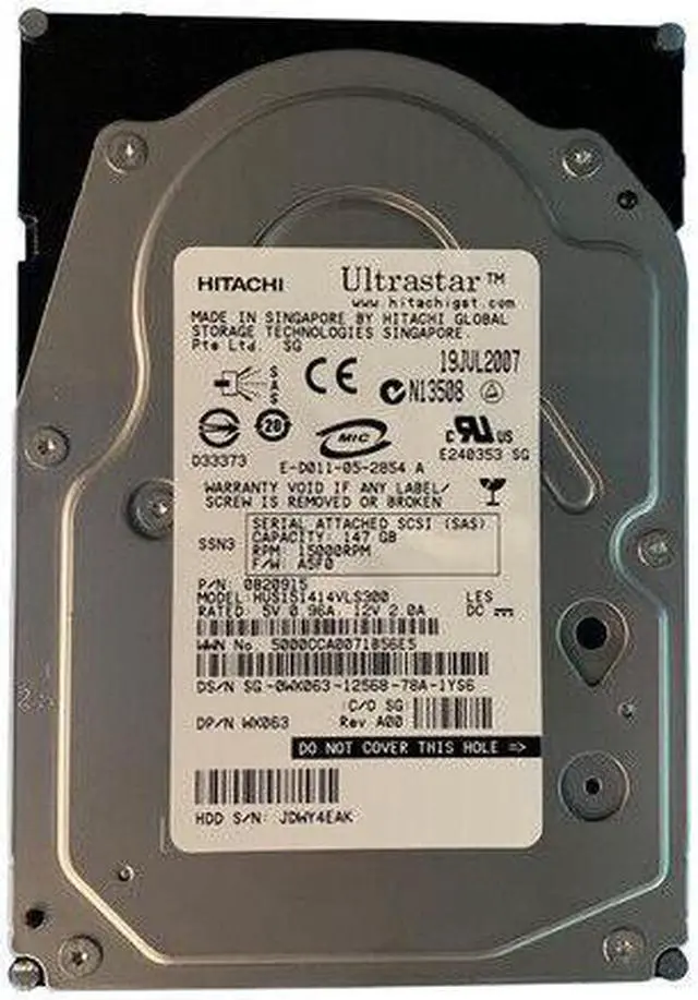(NOT FOR HOME PC!) WX063 0WX063 HUS151414VLS300 0B20915 DELL 146GB 15K SAS 3.5'' LFF HDD W/O TRAY