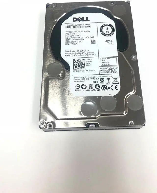 (NOT FOR HOME PC!) 202V7 DELL 0202V7 4TB 7.2K 6Gbps SAS LFF HDD WD4001FYYG W/O TRAY