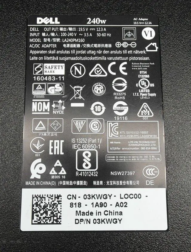 MPN: 03KWGY, LA240PM160, 00MFK9, GA240PE1-00, FWCRC, ADP-240AB DA