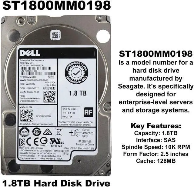 (NOT FOR HOME PC!) Genuine Dell G14 1XZ231-150 1.8TB 10K RPM SAS 12Gb/s 512e 2.5" Hard Drive