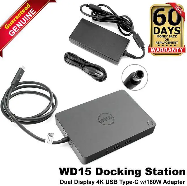 Dell K17A WD15 USB Type-C FHD 4K Docking Station with 180W AC Adapter 70WPT