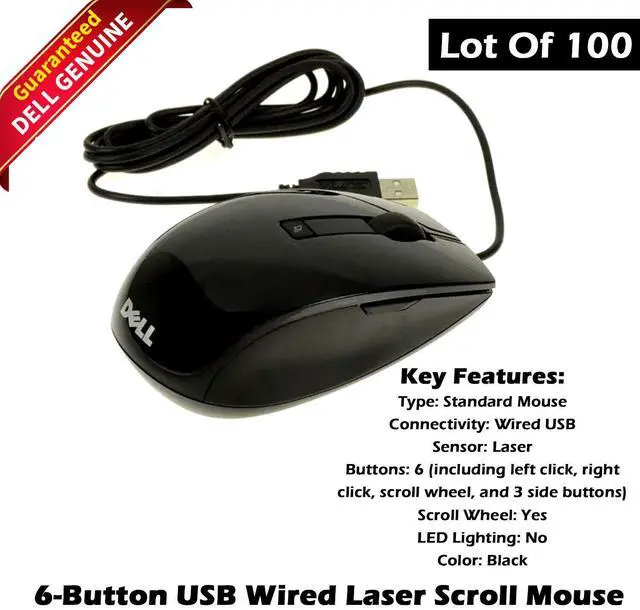 Lot of 100 OEM Dell Black Premium 6Button USB Laser Scroll Mouse V7623 J660D