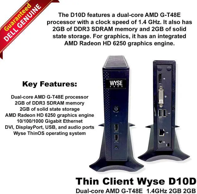 Dell Wyse 5010 Thin Client DX0D AMD G-T48E 1.4GHz 2GB RAM 2GB SSD ThinOS RJ45