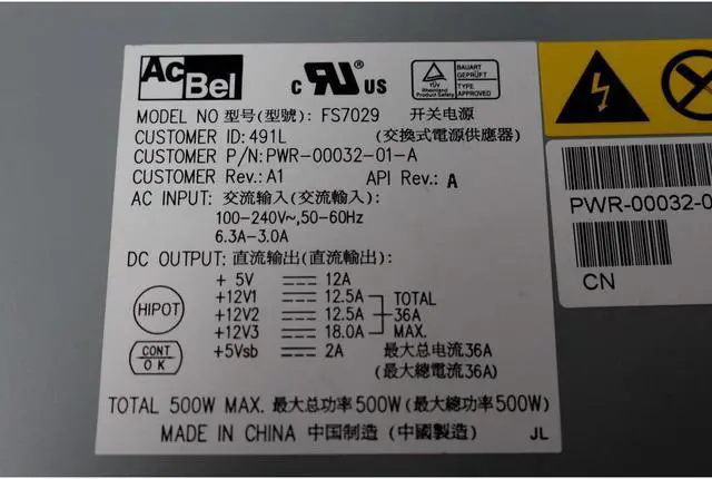 Dell AcBel FS7029 500Watt Server Power Supply Unit PWR-00032-01-A EX151