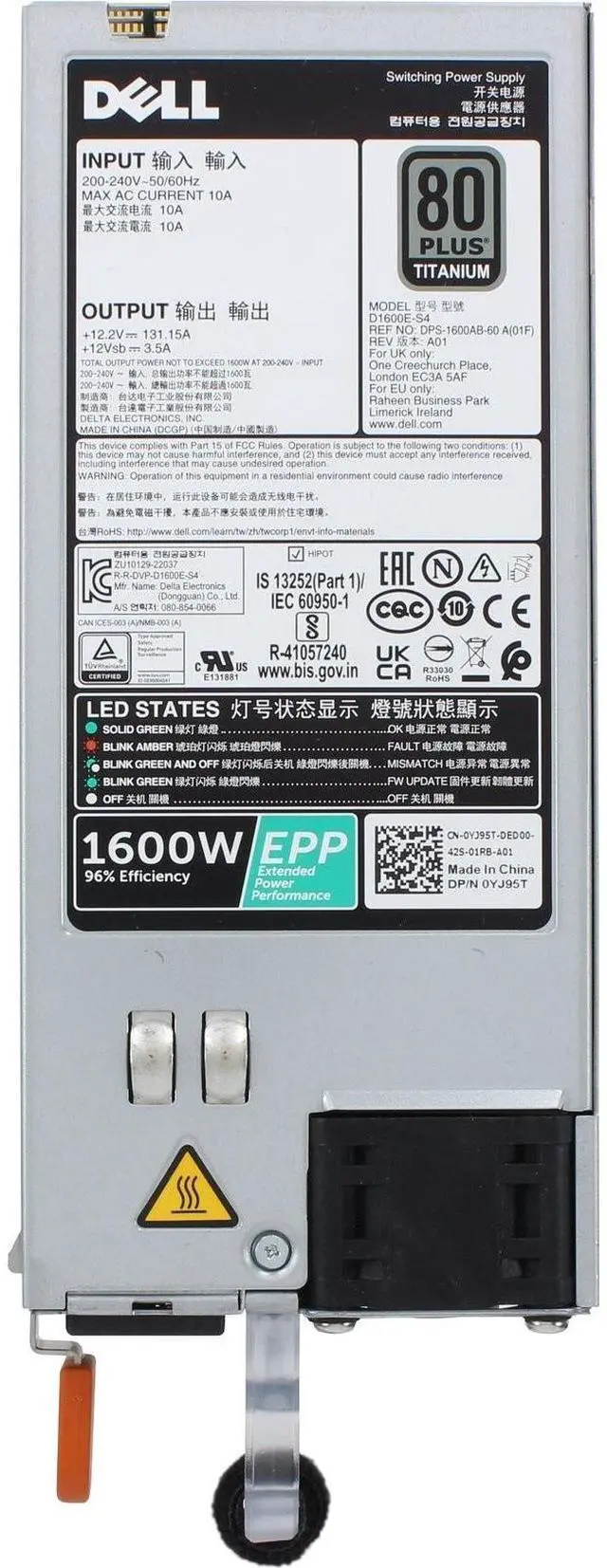 Dell 1600W EPP 80+ Titanium 220V Only PSU (13G/14G) (YJ95T)