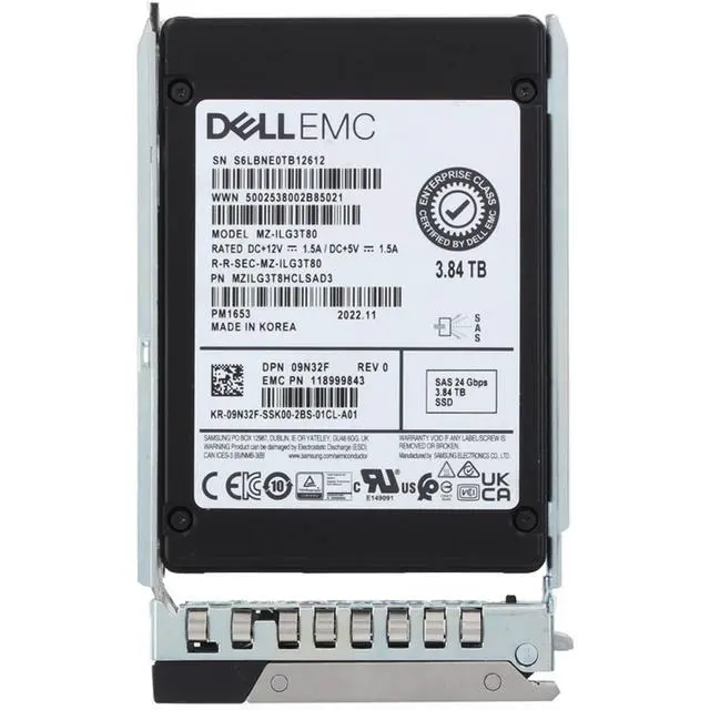 (NOT FOR HOME PC!) Dell 3.84TB 24Gbps SAS RI TLC 2.5 SSD PM1653 (9N32F)