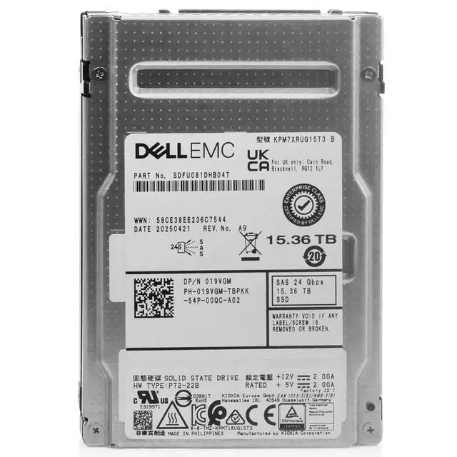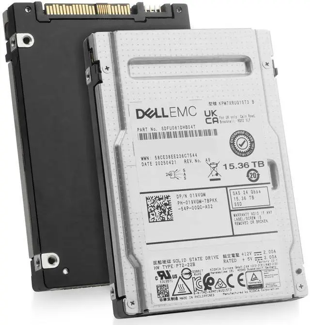 (NOT FOR HOME PC!) Dell/Kioxia 15.36TB SAS-4 24Gb/s 3D TLC 1 DWPD 2.5" Enterprise SSD KPM7XRUG15T3