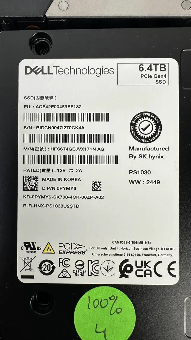 MPN: PYMY6, 0PYMY6, HFS6T4GEJVX171N, PS1030, MU, Mix, Use, 3DWPD, EMC