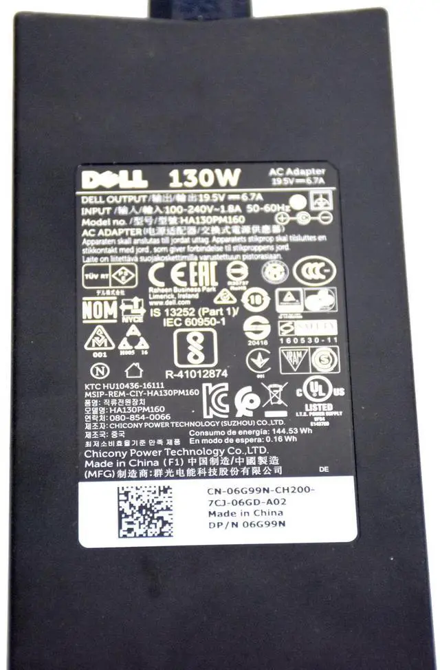 Dell Latitude E6540 130W Slim AC Adapter 19.5V 7.4mmx5.0mm Tip HA130PM160 6G99N