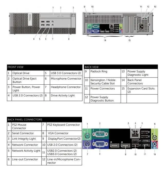 Connectivity: Ethernet, PS/2 Keyboard Connector, PS/2 Mouse Connector, Serial Connector (RS-232), 1/8" Line-in/Microphone, 1/8" Speaker Out, DisplayPort, USB 2.0, VGA