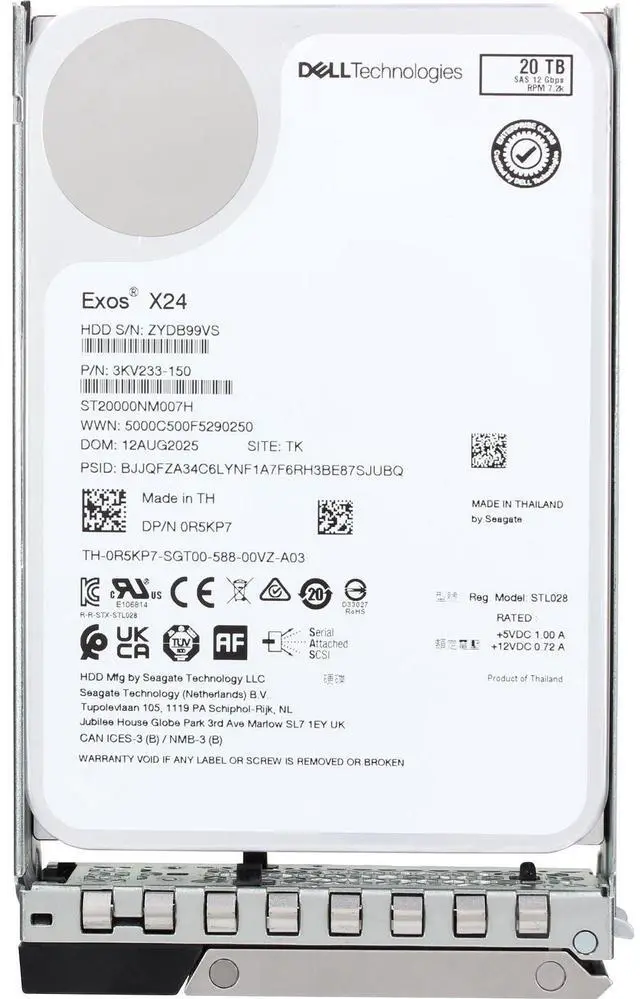 (NOT FOR HOME PC!) Dell 20TB 7.2k 512e 12Gbps NL SAS 3.5 HDD Exos X24 (R5KP7-CDN)