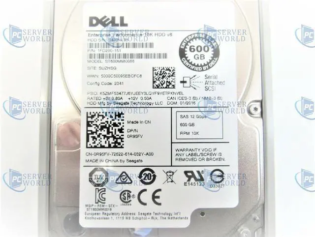 (NOT FOR HOME PC!) R95FV DELL 600GB 10K 12GBPS 2.5'' SAS HARD DRIVE w/ TRAY 0R95FV ST600MM0088