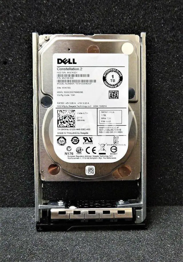 9KW4J ST91000640NS Dell 1TB 7200RPM 6Gbps 2.5" SATA HDD Hard Drive W/R Tray