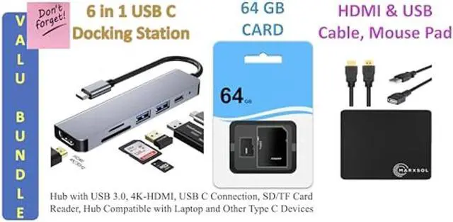 Accessory: MarxsolAccessory (6-in-1 USB-C Docking Station Hub with USB 3.0, 4K-HDMI, USB-C Connection, SD/TF Card Reader + 64GB SD Card+HDMI & USB Cable, Mouse Pad)