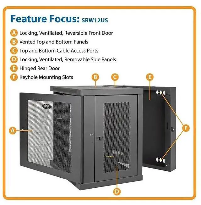Tripp Lite SmartRack 12U Switch-Depth Wall-Mount Rack Enclosure Cabinet, Back