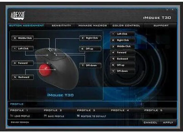 Adesso IMOUSE T30 Wireless Trackball Mouse 4800 DPI