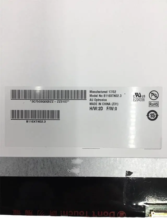 Package Includes: 1 AU Optronics 11.6" LED LCD Panel Screen B116XTN 02.3
