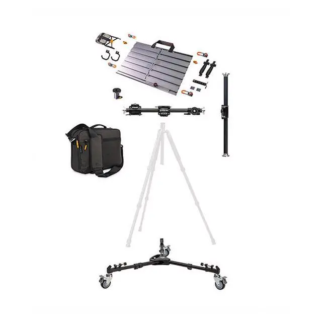 Note: Compatible with all Photo Tripods- Tech Clamps - Secure laptops, tablets, hard drives, or batteries with low-profile, dual-padded clamps Hold items from 3.6 mm up to 16mm. Use step-up side for thicker devices; step-down side for thinner devices Tighten or loosen with a simple turn of the knob to lock or unlock devices Non-marring, dual-sided pads protect screens and keyboards while keeping devices firmly in place Installs in any track. Devices can be mounted in any direction- Handle - Slides into the track for easy carrying - durable, lightweight, and comfortable Made of weather-resistant poly webbing Slide to install handle on folded table Can always remain on table, folds when table is folded or easily removable- Configuration Tool - Mounts directly into any universal track system for quick adjustments Securely fastens within any track for quick access One 2.5 mm hex tool for AeroTrac accessory installation One 4mm hex tool for use with any tripod or other photo/video accessories- Action Tabs - Magnetic locking system simplifies opening and folding the table on set Activate the magnetic locking feature for secure closure and transport Includes 2 integrated 1/4"-20 threads- 1/4"-20 Threads - Add threaded mounts anywhere on the top or bottom of platform to secure arms, lights, monitors, speakers and more Includes 2x 1/4"-20 Female Accessory Threads- AeroTrac Carrying Case -Designed to hold your workstation, tablet, tripod, and accessories.