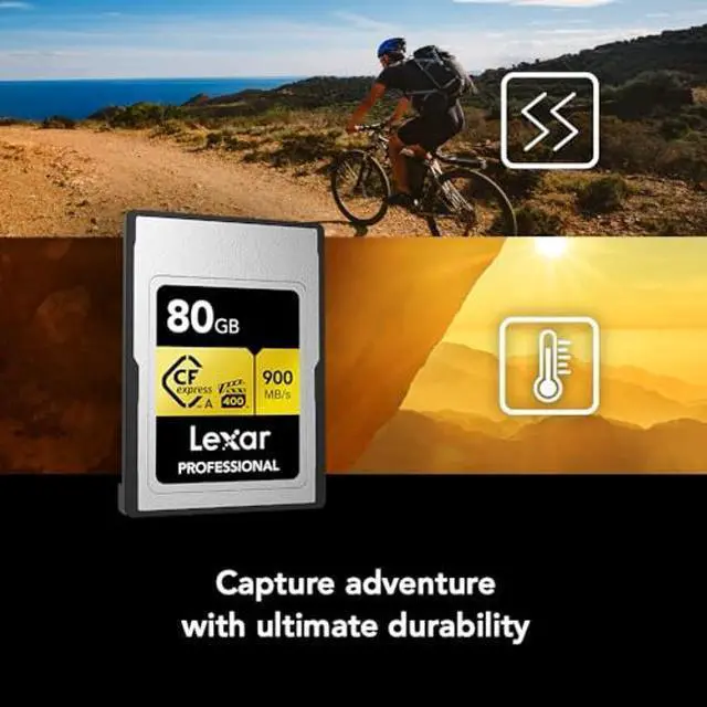 Lexar 80GB Professional CFexpress Type A Gold Series Memory Card, Up to 900MB/s Read, Cinema-Quality 8K Video, Rated VPG 400 (LCAGOLD080G-RNENG)