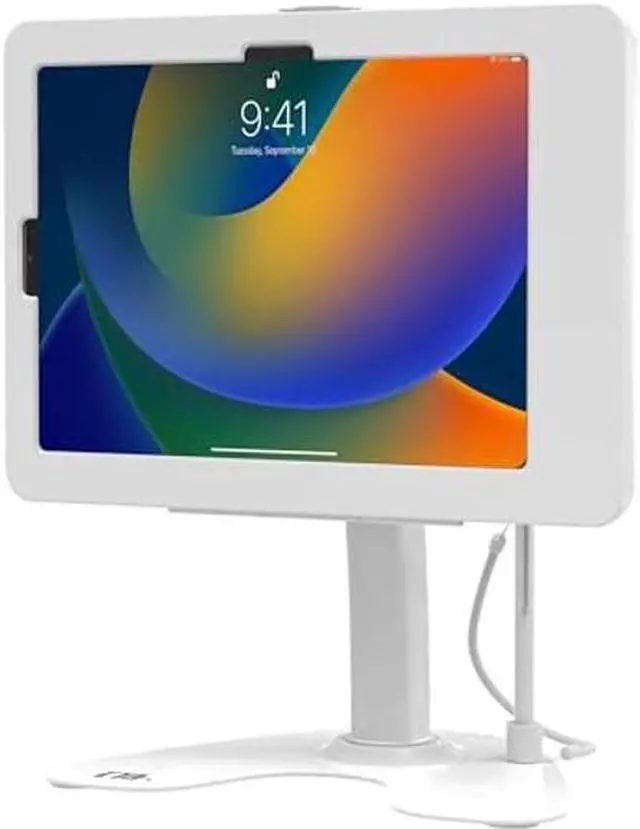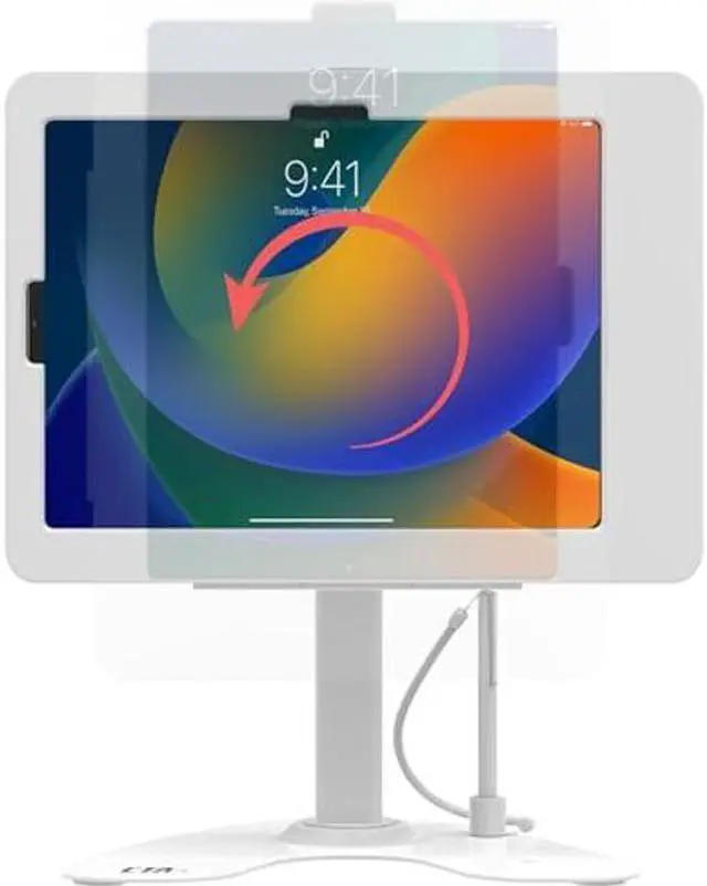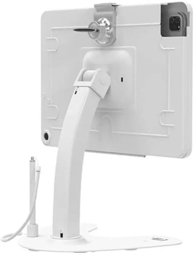 This versatile security stand makes your iPad the protected centerpiece of a streamlined workstation, kiosk display, or retail point of sale. The base rotates 360 degrees, while the enclosure flips fully front-to-back for easy customer-to-register interactions. The enclosure also rotates 360 degrees for use in portrait and landscape orientations. This locking enclosure keeps devices protected from theft with lock-and-key security. For an optional added measure of protection, loop the included steel security cable around a permanent fixture and secure to either the stand base or back of the case. The enclosure allows full access to your tablet's ports, buttons, cameras, and headphone jack, for card reader compatibility.