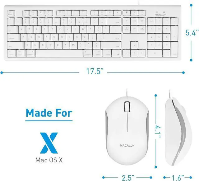 Classic Apple keyboard, white matte finish full size keypad and shortcut keys to increase productivity. Includes a computer mouse designed for precision, comfortable control, and smooth scrolling. Always depend that your wired computer mouse will not lag or die on you. Comes with an aluminum ergonomic laptop stand that improves posture and cools down laptop. Designed at the ideal eye level angle, prevents hunching over your laptop screen.