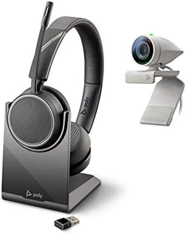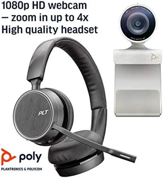 Poly (Plantronics + Polycom) Studio P5 Webcam with Voyager 4220 UC Headset Kit - 1080p HD Professional Video Conferencing Camera & Stereo Bluetooth Wireless Headset - Certified for Zoom & Teams