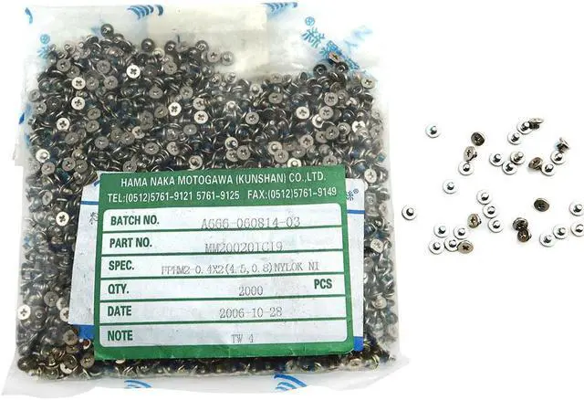 Acer Nylok Patch Flat Phillips Head M2 0.4x2mm Ni Screws 1844 Pieces Package MM20020ICI9.