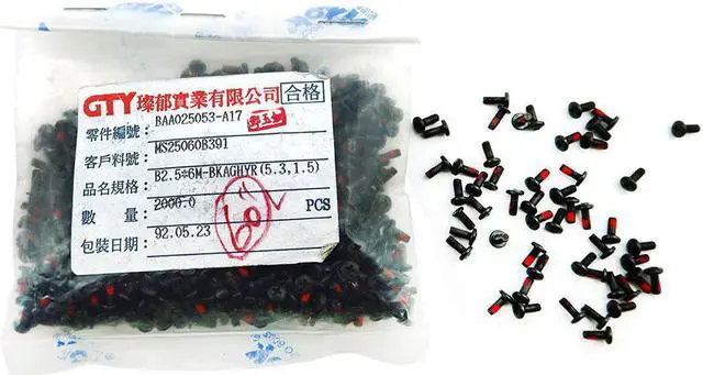 Acer Nylok Patch M2.5x6mm Flat Head Screws 2000 Pieces Package BAA025053-A17.