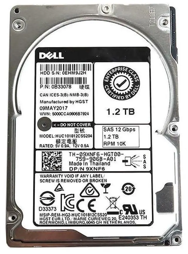 Dell Hitachi Ultrastar C10K1800 HUC101812CSS204 1.2TB 2.5" 10000RPM 128MB Cache SAS 12.0Gb/s Internal HDD Hard Disk Drive 9XNF6 09XNF6 TH-09XNF6.